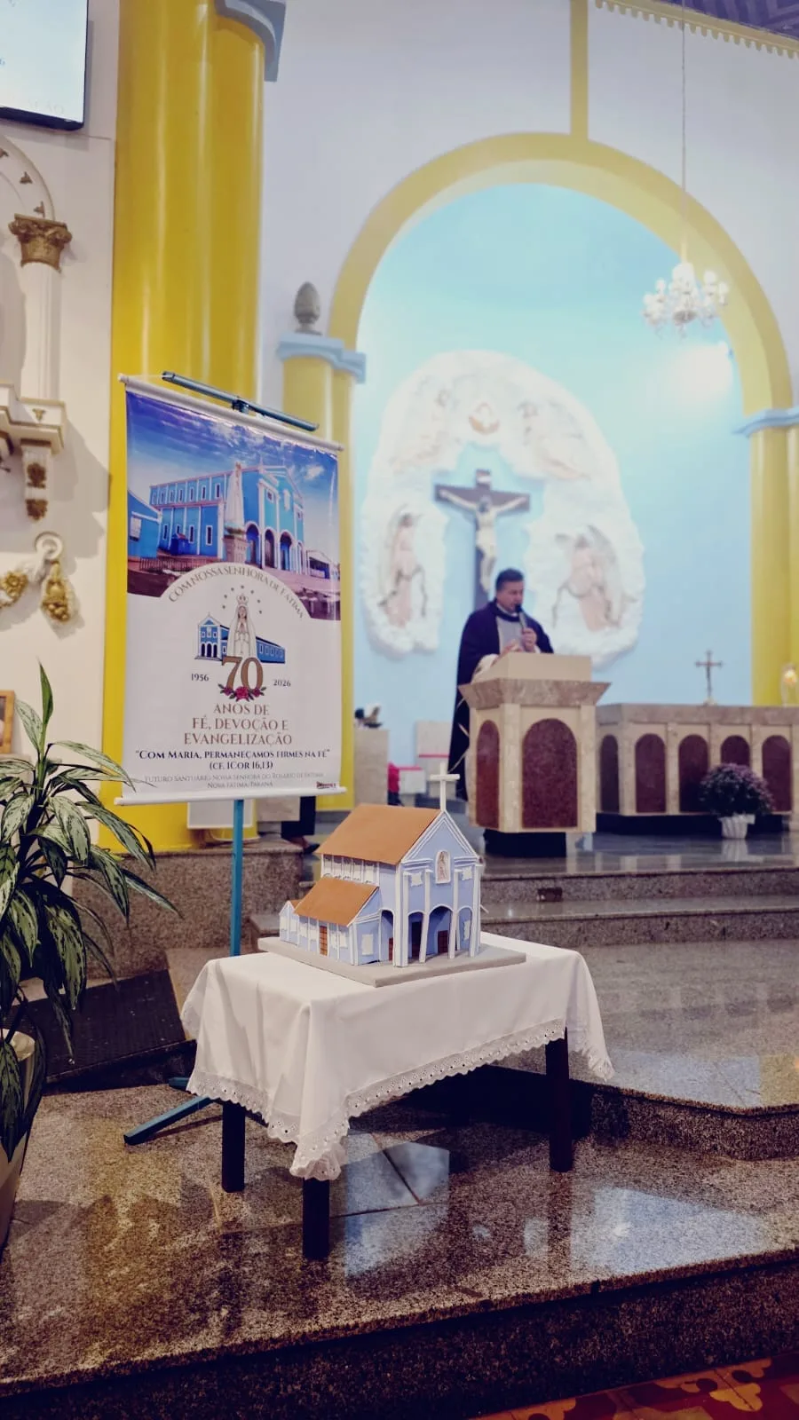 Neste mês de fevereiro, a celebração do dia 24 teve um brilho especial com a presença do Padre Alcides Andreatta, que presidiu a Eucaristia e conduziu a assembleia em um profundo momento de oração e ação de graças pela história construída por tantas mãos e corações ao longo destas sete décadas.Um Momento de AdoraçãoO ponto alto da espiritualidade ocorreu logo após o rito da comunhão. Em um silêncio respeitoso e repleto de devoção, Padre Alcides conduziu a Bênção com o Santíssimo Sacramento. Foi um momento oportuno para que cada fiel pudesse colocar diante de Jesus Eucarístico suas intenções particulares e, sobretudo, a gratidão por fazer parte desta família paroquial."Celebrar o dia 24 é renovar nossa aliança com Deus e com a história desta paróquia que é fonte de bênçãos para tantas famílias", destacou um dos paroquianos presentes.Próximo EncontroAs celebrações mensais do Jubileu são etapas fundamentais da nossa preparação espiritual para a grande festa dos 70 anos. Se você não pôde comparecer desta vez, já deixe anotado em sua agenda: todo dia 24, até julho, onde teremos nossa grandiosa festa, temos um encontro marcado com a nossa história e com a nossa fé.Confira abaixo os registros fotográficos deste momento especial.